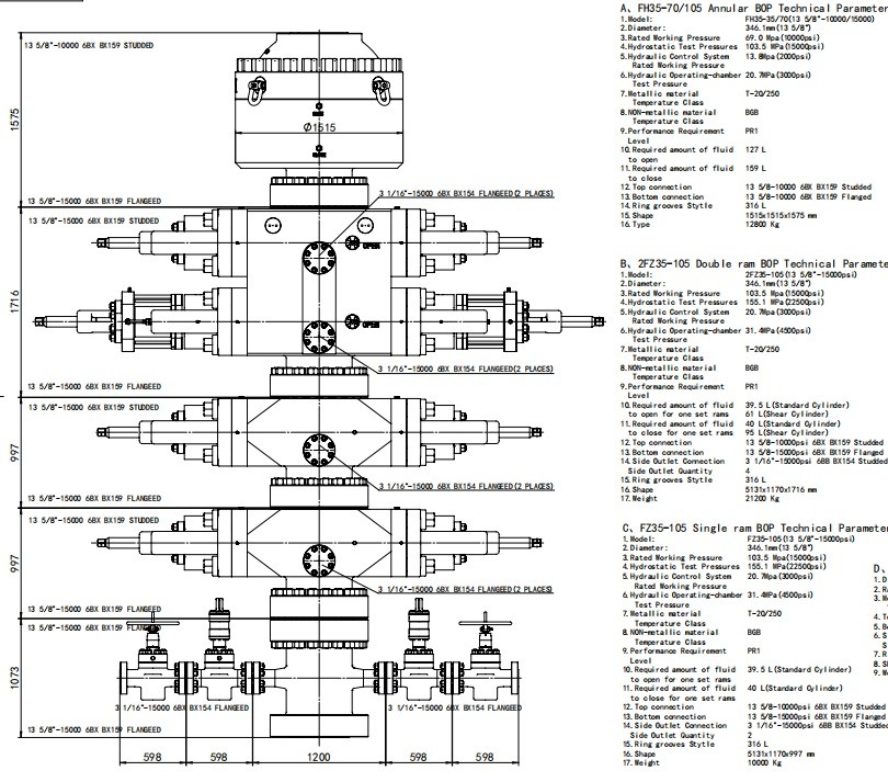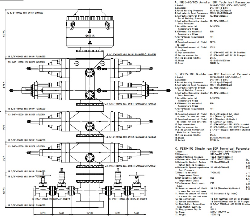 13 5/8-15000PSI Ram BOP and Annular BOP