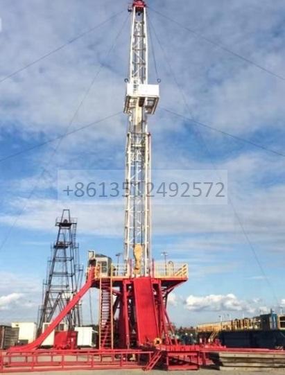 8.Drawworks main brake adopts the band brake or hydraulic disc brake as ptional. The auxiliary brake can be pneumatic push disc type , pneumatic caliper disc type and water brake. The sand drum is ptional. The design and manufacture of drawwork parts comply with API 7k specification.