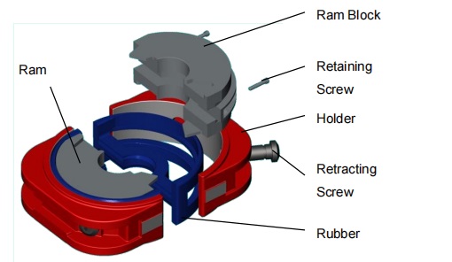 Floating performance of the ram is good.Because the ram seat (ram holder) and the ram body(block) are separated, the ram can move slightly in the holder to ensure positive alignment ofthe rubber faces as face seal contact occurs.