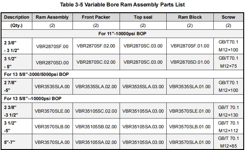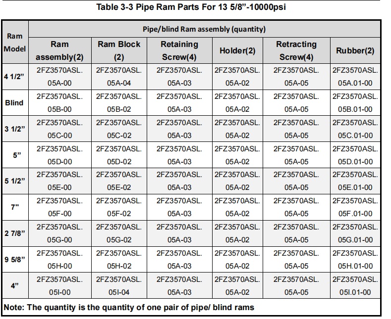 For various size drilling tools, onlyneed to change relevant top sealand face seal including blind ram,other element are universal.