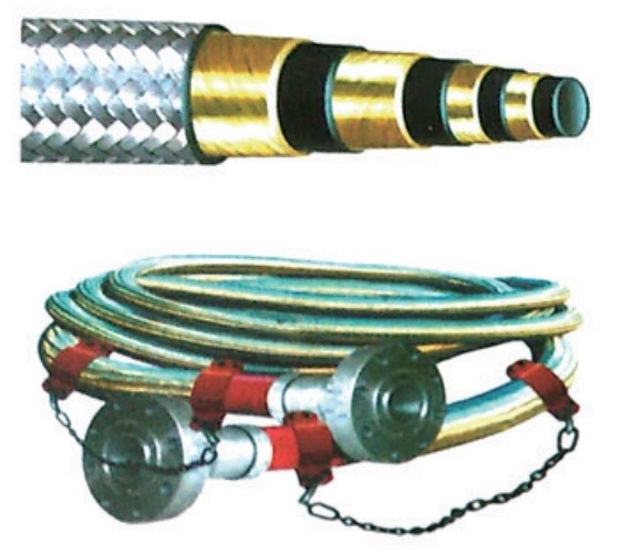 Purposes: Applicable to connection at loctions when drillplatform,semi-submersible drilling vessel or drilling vessel movesrelatively and the installation dimensions of the drill rig subsequently change,and to delivery of oil,gas,mud and other high pressure media.